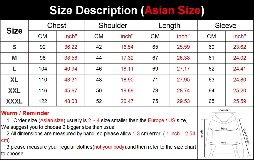S, M, L, XL, XXL, XXXL